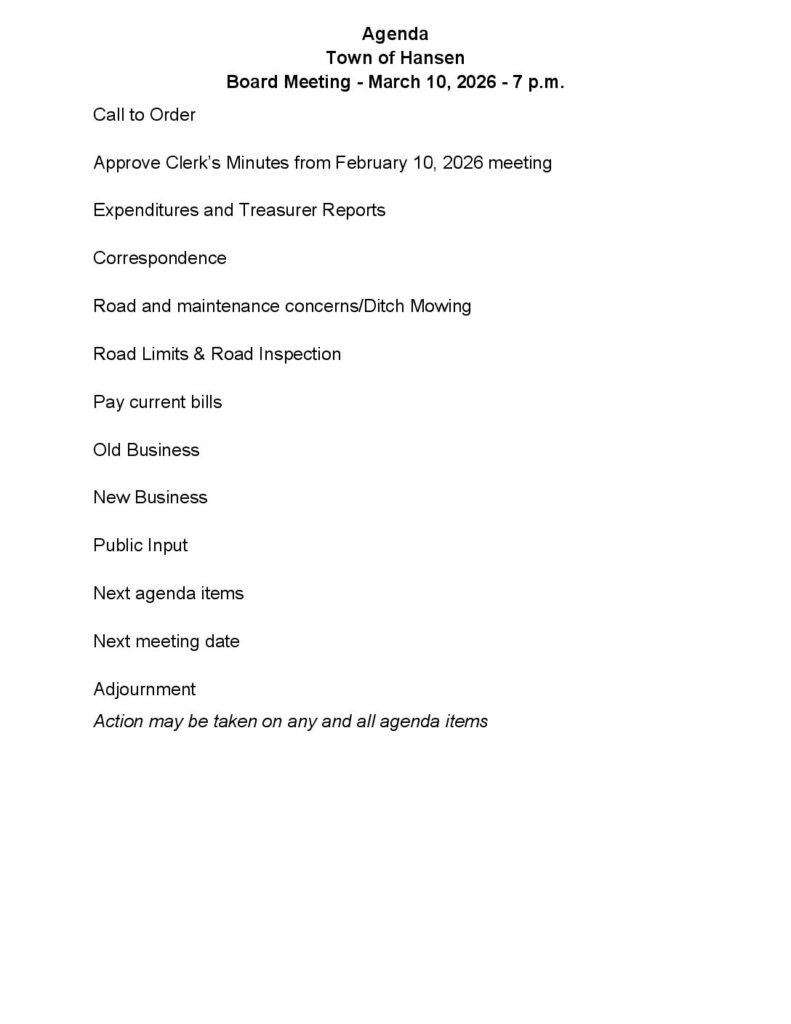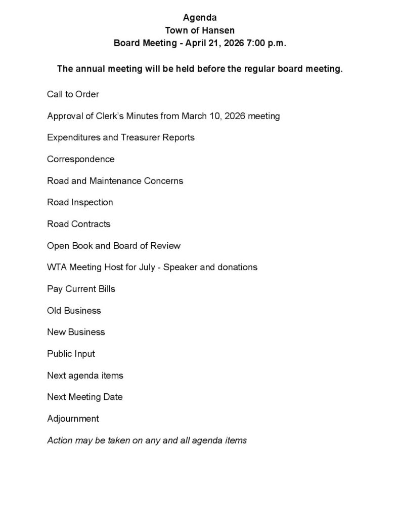 TOWN OF HANSEN MEETING MINUTES